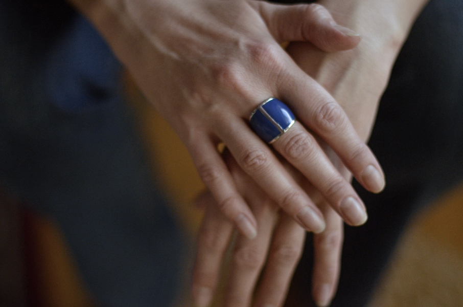 Klasická modrá barva oddělená stříbrem. Vyvážená symetrie.
