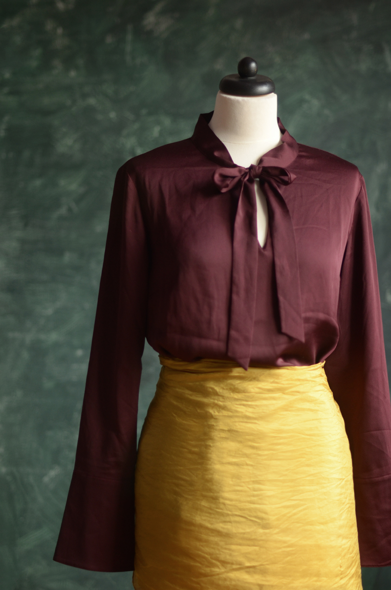 Složení: 100% polyester (velmi ušlechtilý vzhled - je vidět na detailu rukávu - je to takový vzhled "žoržetu ze sbírek Uměleckoprůmyslového muzea)