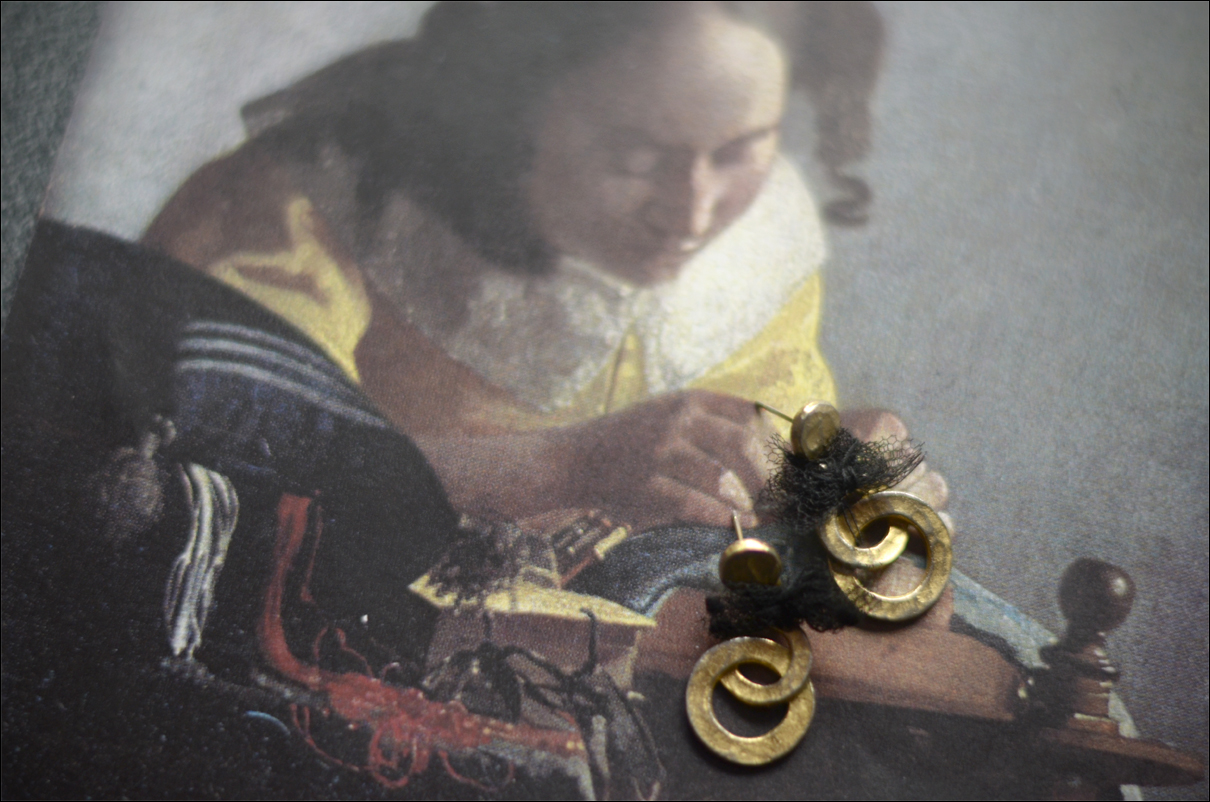 Kdysi to bývaly prostě naušnice z běžného kovu, pozlacené ... ovšem nyní díky patině a díky kreativnímu dotvoření tylem, je to - a nebojím se toho slova, které se mi moc líbí - majstrštyk :)